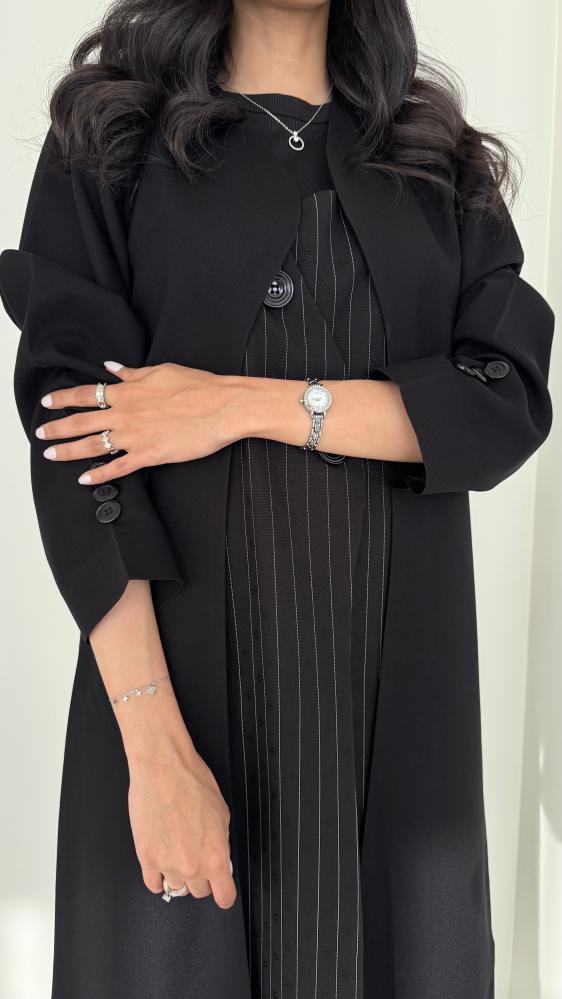 عباية بليزر بتصميم عصري أنيق يجمع بين الرسمية واللمسة الكلاسيكية.