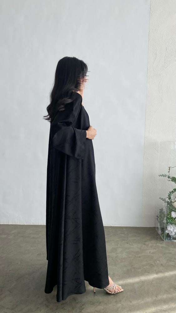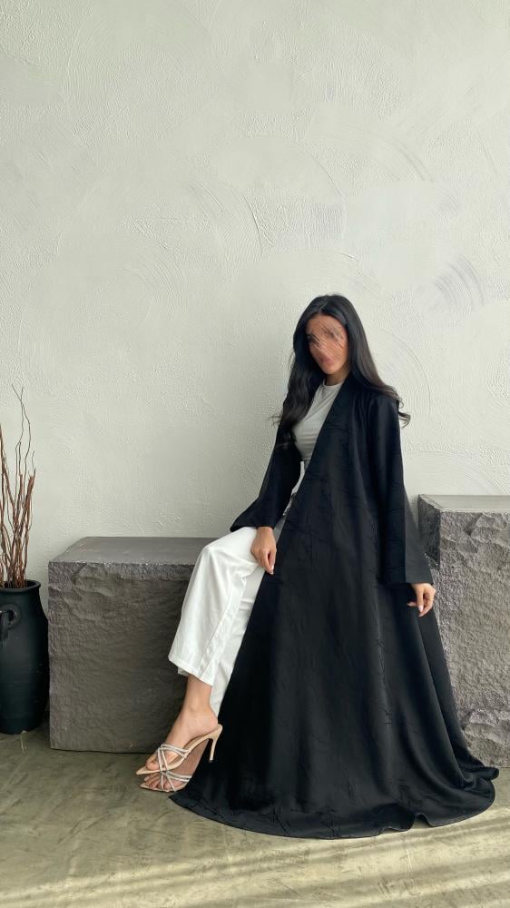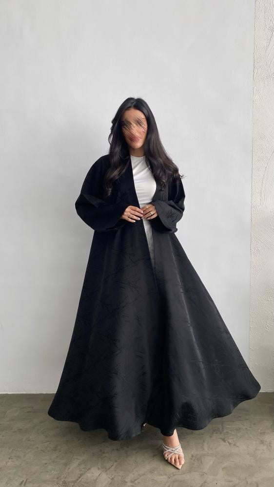 عباية سوداء فاخرة بنقشة أنيقة بقماش كتان