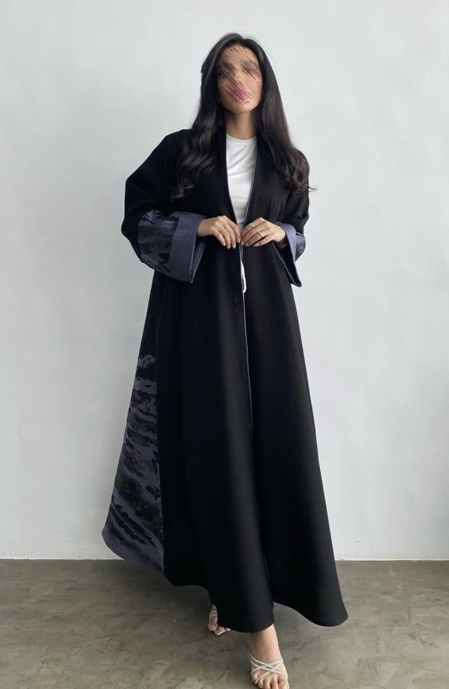 إطلالة تجمع بين الفخامة والأناقة مع هذه العباية المصنوعة من قماش الكتان الفاخر في الأمام والخلف. تتميز العباية بتصميم نص كلوش يمنحك حرية الحركة وأناقة انسيابية، مع أكمام تفته مشجر تضيف لمسة عصرية وجذابة. النقوش على الأكمام وحواف العباية تضفي بعداً جمالياً راقياً، مما يجعلها مثالية للمناسبات الرسمية والخروجات اليومية الفاخرة.