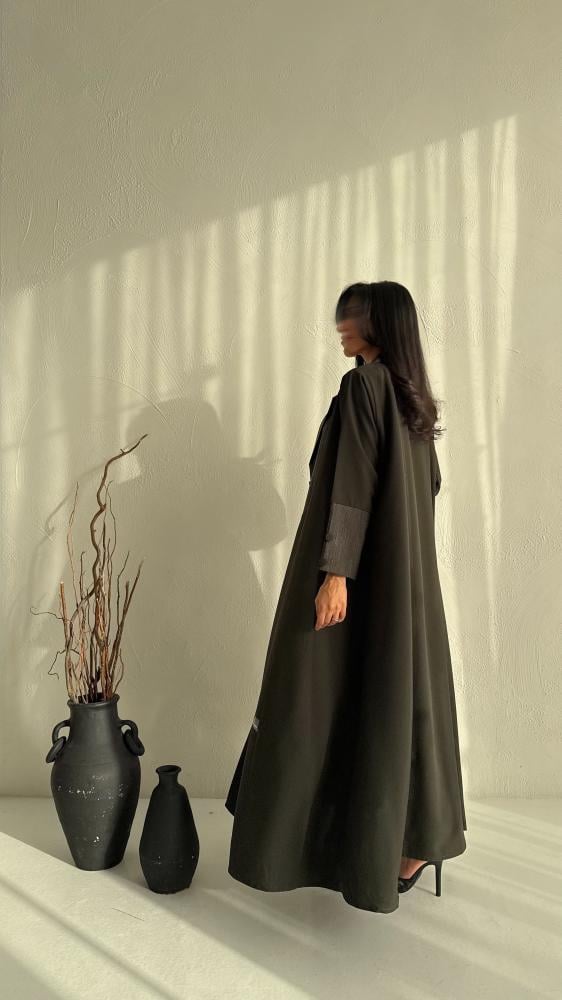 تميّزي بإطلالة جريئة وراقية مع هذه العباية الجاكيت بلون زيتي غامق ولمعة أنيقة تضيف لمسة من الفخامة. مصممة بأسلوب الجاكيت المفتوح، ما يجعلها خيارًا مثاليًا للإطلالات المسائية والمناسبات الخاصة. تجمع هذه القطعة بين العملية والأناقة، مع خامة لامعة راقية تضفي حضورًا لافتًا دون مبالغة.