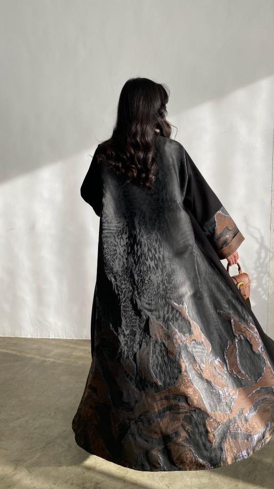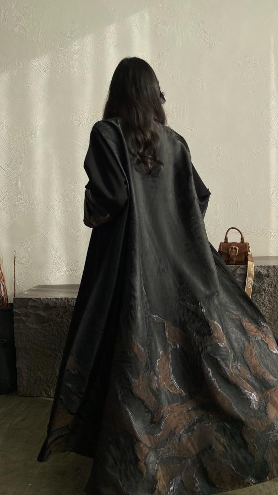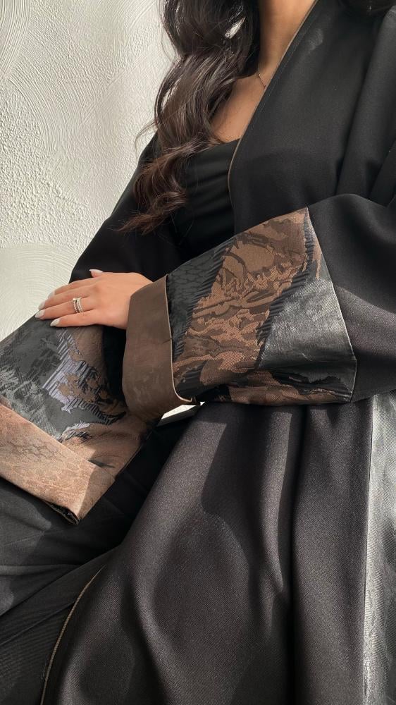 إطلالة تجمع بين الفخامة والأناقة مع هذه العباية المصنوعة من قماش الكتان الفاخر في الأمام والخلف. تتميز العباية بتصميم نص كلوش يمنحك حرية الحركة وأناقة انسيابية، مع أكمام تفته مشجر تضيف لمسة عصرية وجذابة. النقوش على الأكمام وحواف العباية تضفي بعداً جمالياً راقياً، مما يجعلها مثالية للمناسبات الرسمية والخروجات اليومية الفاخرة.