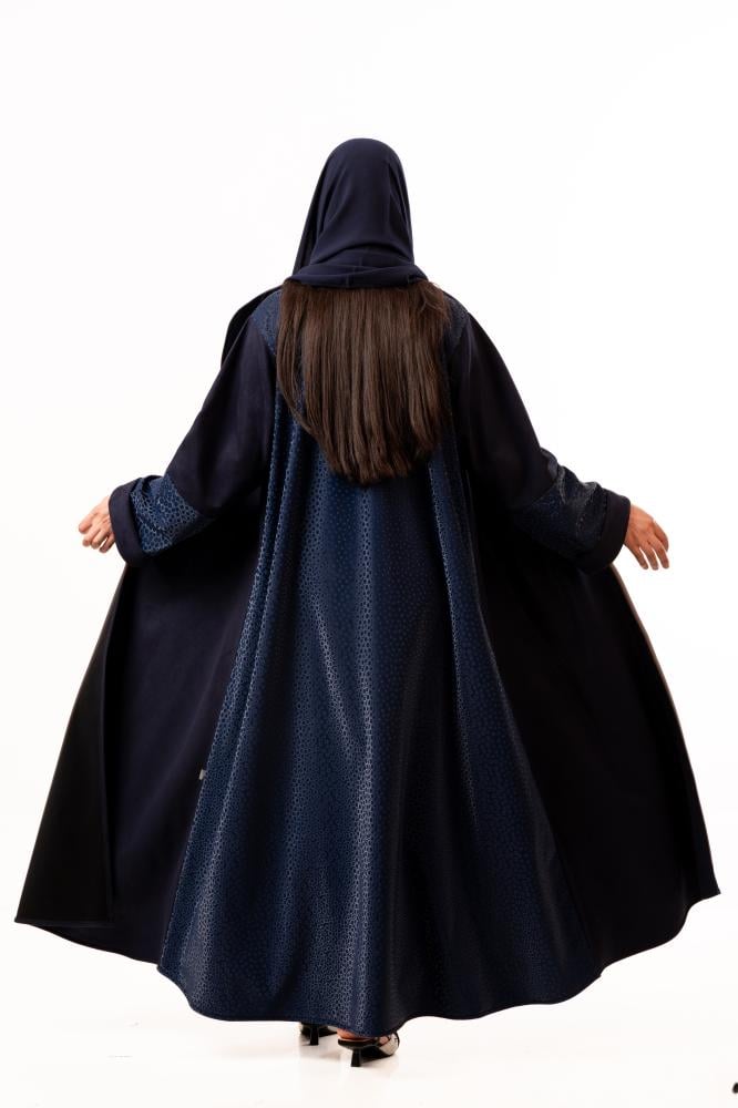 أضفي لمسة من الفخامة إلى إطلالتك الشتوية مع هذه العباية المصممة بأناقة. مصنوعة من قماش الشمواه الفاخر الذي يتميز بنعومته ودفئه المثالي للأجواء الباردة. تأتي العباية بتصميم مميز، حيث تضيف التفاصيل الجلدية على الأكمام والخلف لمسة عصرية وجريئة. تتميز بقصة نص كلوش التي تمنح حرية في الحركة وانسيابية رائعة. إنها الخيار الأمثل للسيدات اللواتي يبحثن عن مزيج من الأناقة الكلاسيكية واللمسات الحديثة.