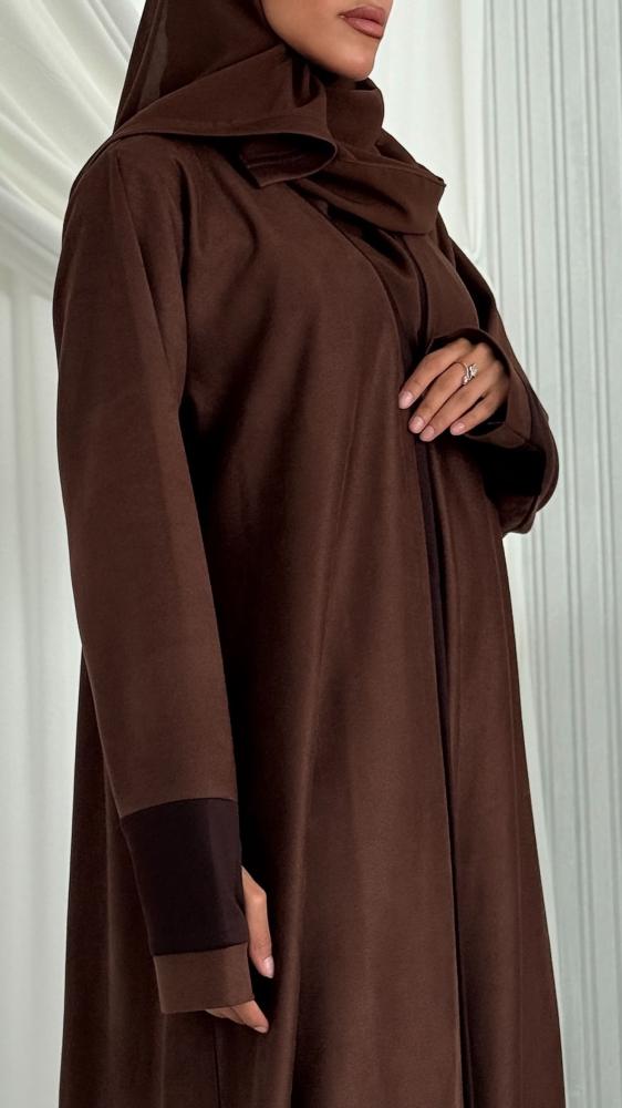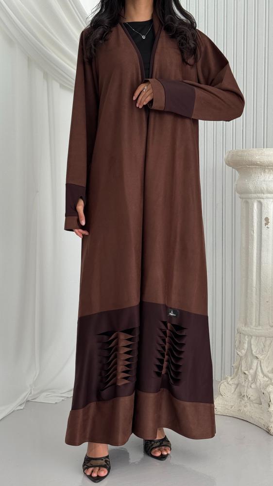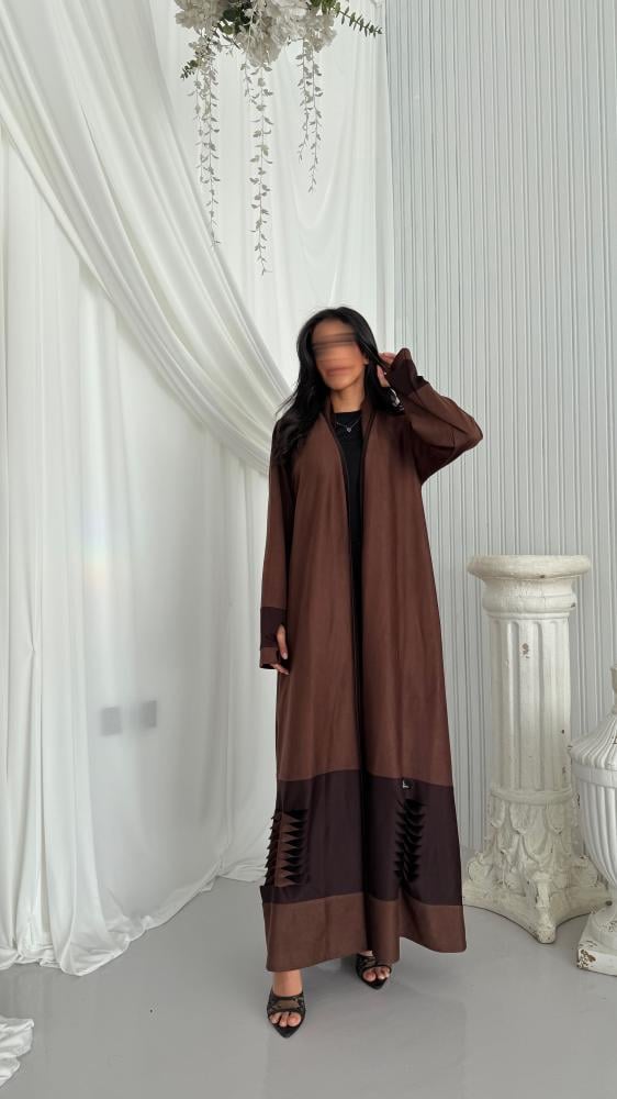 عباية راقية بتصميم يجمع بين البساطة والفخامة، مصنوعة من قماش الشمواه الفاخر المعروف بملمسه الناعم ومظهره الأنيق. تأتي بقصّة نصف كلوش تمنحك انسيابية جذّابة وأناقة لافتة في كل حركة. متوفّرة بأربع ألوان لتختاري ما يناسب ذوقك وإطلالتك.
