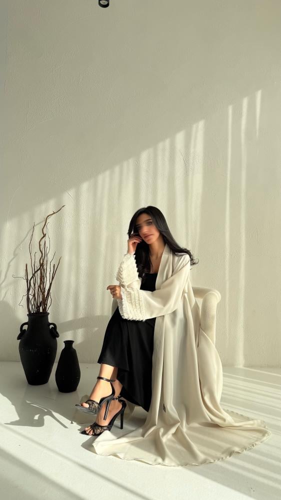 ارتقي بإطلالتك مع عباية الكتان الدبل كلوش باللون البيج الفخم، التي تجمع بين الفخامة والراحة في آنٍ واحد. تصميمها الواسع والانسيابي يمنحك حضوراً مميزاً وأناقة ملفتة، مع خامة كتان طبيعية عالية الجودة توفر تهوية مثالية وملمسًا ناعمًا يناسب مختلف المواسم.