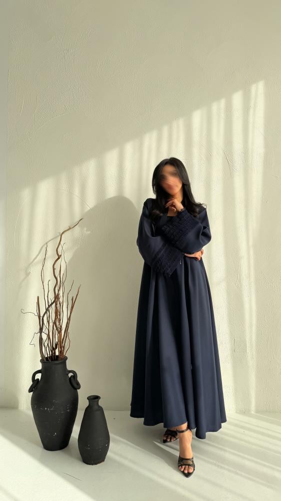 ارتقي بإطلالتك مع عباية الكتان الدبل كلوش باللون الكحلي الفخم، التي تجمع بين الفخامة والراحة في آنٍ واحد. تصميمها الواسع والانسيابي يمنحك حضوراً مميزاً وأناقة ملفتة، مع خامة كتان طبيعية عالية الجودة توفر تهوية مثالية وملمسًا ناعمًا يناسب مختلف المواسم.