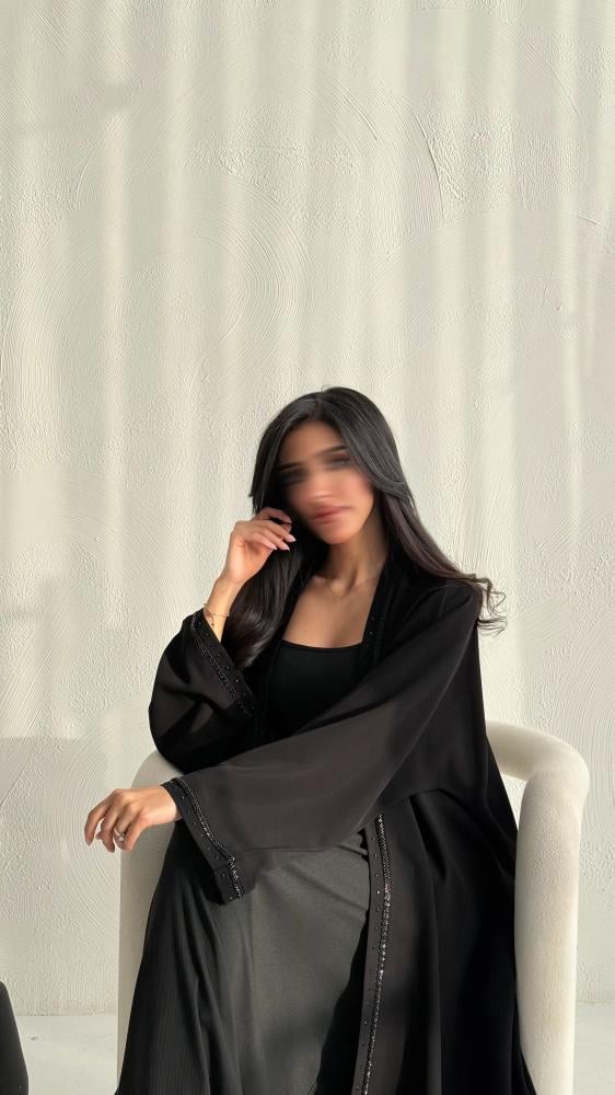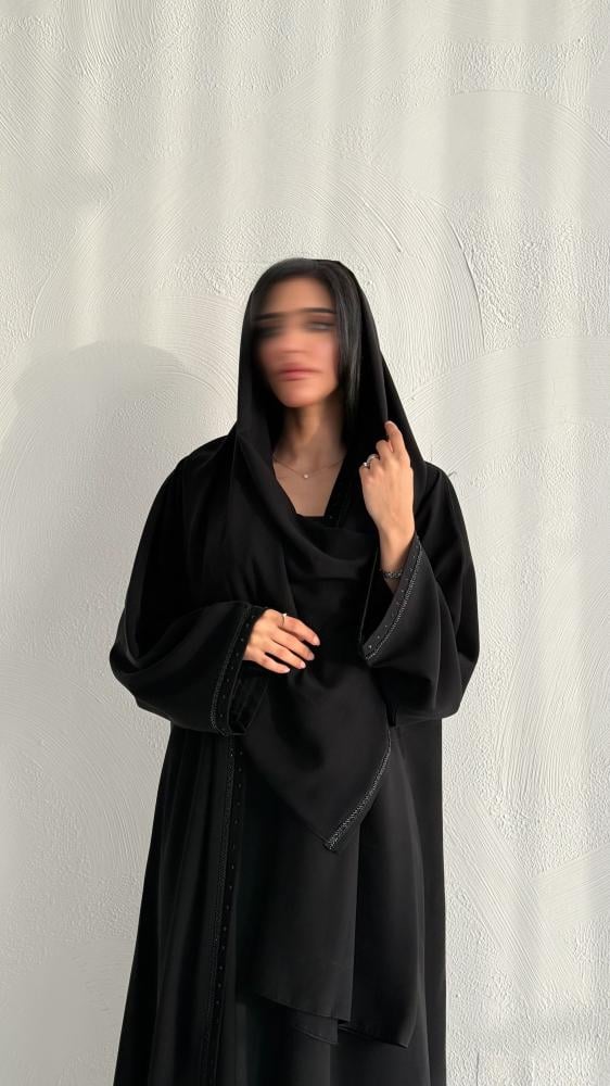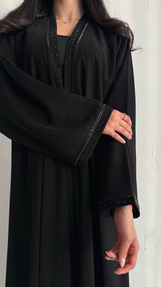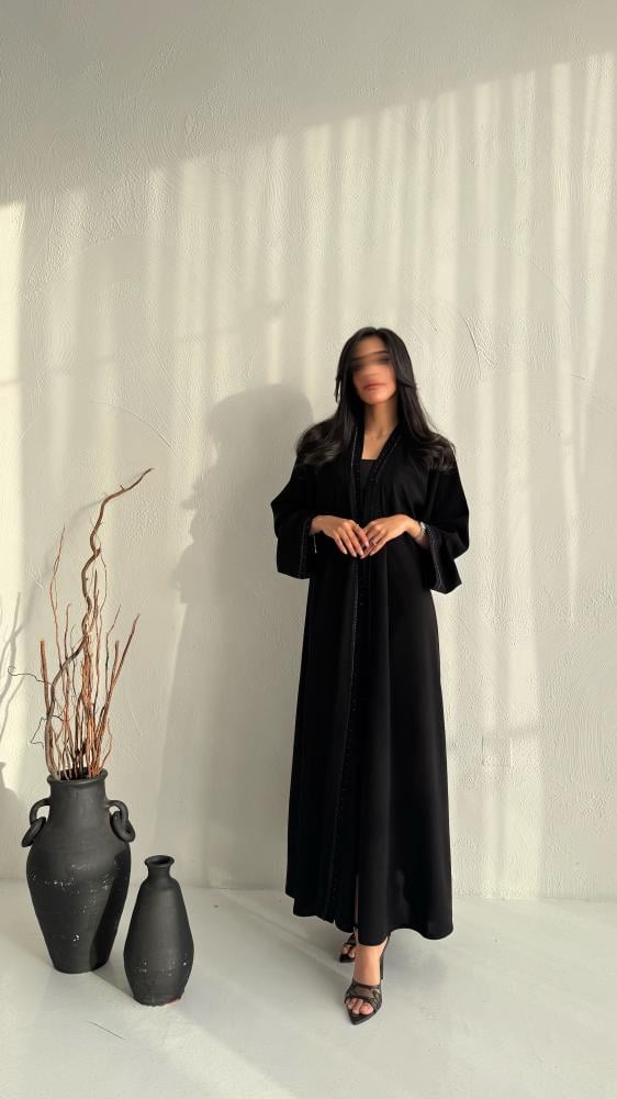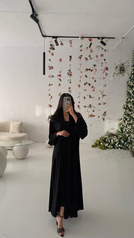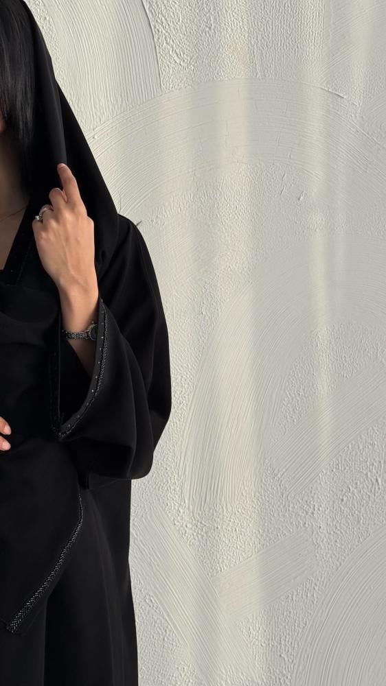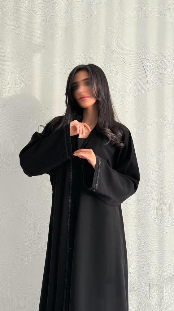 - تطريز كريستال أنيق: يزين الأكمام وأطراف العباية ببريق فخم ومتوازن