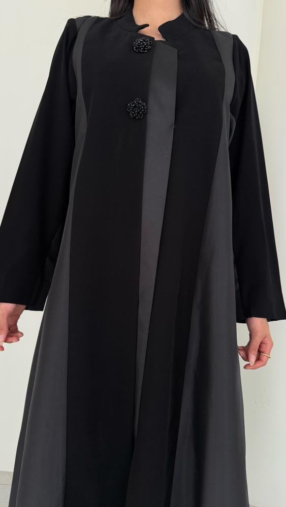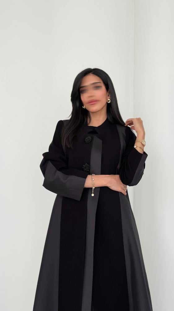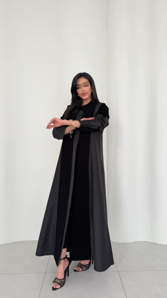 إطلالة راقية تجمع بين الفخامة والهيبة مع عباية نص كلوش بتصميم عصري وأنيق. تأتي بلمسة مميزة عند الأكتاف الإسفنجية التي تمنح ثباتاً وجمالية للتصميم، مصنوعة من مزيج فاخر من قماش التفته والكوبرا المعروفين بلمعتهما الفاخرة وانسيابيتهما الناعمة. تصميمها الأنيق يناسب الإطلالات الرسمية والمناسبات المميزة، ويضفي حضوراً واثقاً لكل من ترتديها.